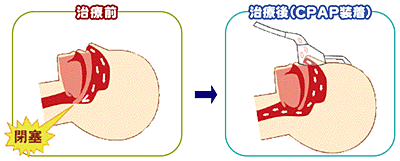 CPAP装置を使用した場合の気道の様子